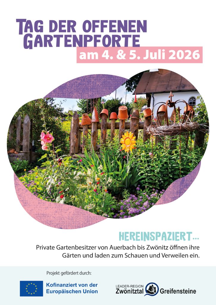 Im Rahmen unseres LEADER-Projektes „Lebensinseln – Zukunft gestalten für Mensch und Natur“ öffnen private Gartenbesitzer in der Region „Zwönitztal-Greifensteine“ (und darüber hinaus) ihre wunderschönen naturnahen Gärten am lersten Wochenende im Juli für interessierte Besucher und Garten-Enthusiasten.