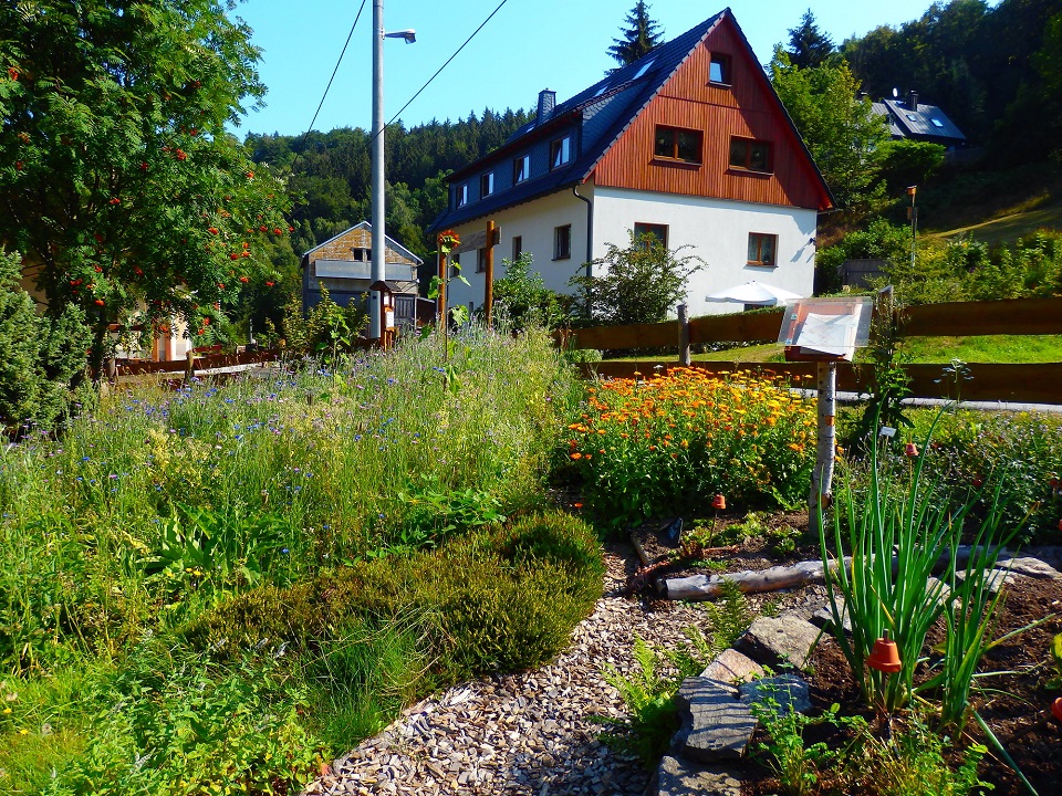 Auch wenn ihre Gartenwiese nicht so groß ist, wenn ihre Gartennachbarn auch gemäht haben, dann sind 50 m Flugradius schnell ausgereizt. Sorgen sie also dafür, dass immer etwas blüht in ihrem Garten und schaffen Sie Habitatmöglichkeiten.